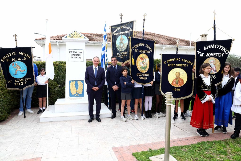 Στον Ιερό Ναό Αγίου Γεωργίου στον Άγιο Δομέτιο τελέστηκε πανηγυρική δοξολογία, όπου ο Δήμαρχος Λευκωσίας, Χαράλαμπος Προύντζος εκφώνησε τον πανηγυρικό της ημέρας, αποδίδοντας τον οφειλόμενο φόρο τιμής στους ήρωες του αγώνα.