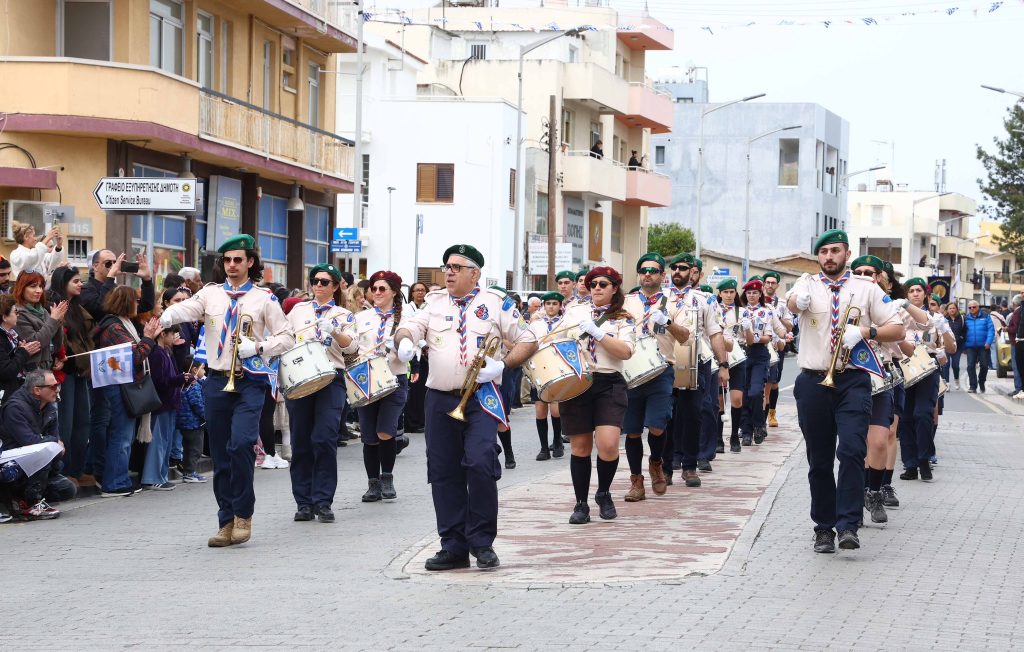 Ακολούθησε κατάθεση στεφάνων στο Μνημείο Πεσόντων στον περίβολο της εκκλησιας και παρέλαση τοπικών σχολείων και οργανωμένων συνόλων στη Λεωφόρο Γρηγόρη Αυξεντίου, στέλνοντας ηχηρό μήνυμα εθνικής υπερηφάνειας.