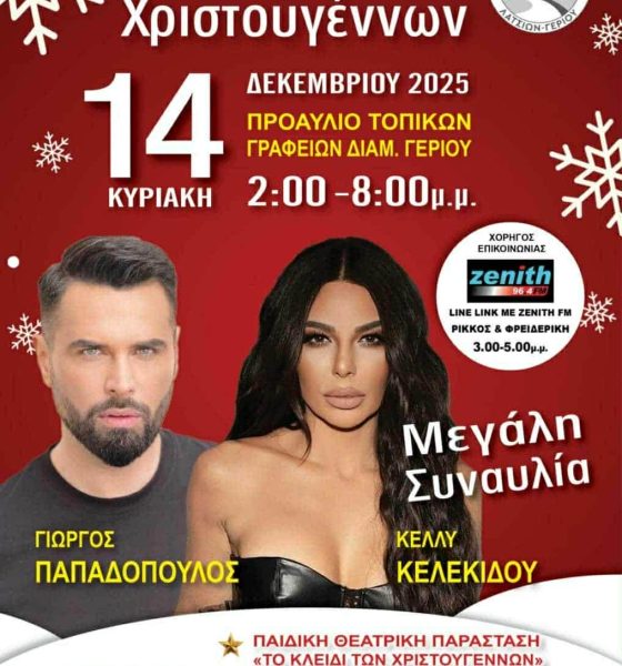 Λεωφόρος Χριστουγέννων 2025! Ο Δήμος Λατσιών – Γερίου σας προσκαλεί στη χριστουγεννιάτικη εκδήλωση που θα πραγματοποιηθεί την Κυριακή 14 Δεκεμβρίου...