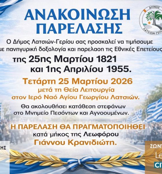 Οι Δήμοι Λακατάμειας, Λατσιών – Γερίου και Νότιας Λευκωσίας – Ιδαλίου ανακοίνωσαν ότι οι προγραμματισμένες εκδηλώσεις για τα Καρναβάλια και την Καθαρά Δευτέρα, στις 22 και 23 Φεβρουαρίου ακυρώνονται...